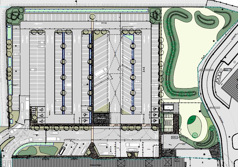– Gestion intelligente des eaux de pluie (noues, arbres à pluie, matériaux perméables),